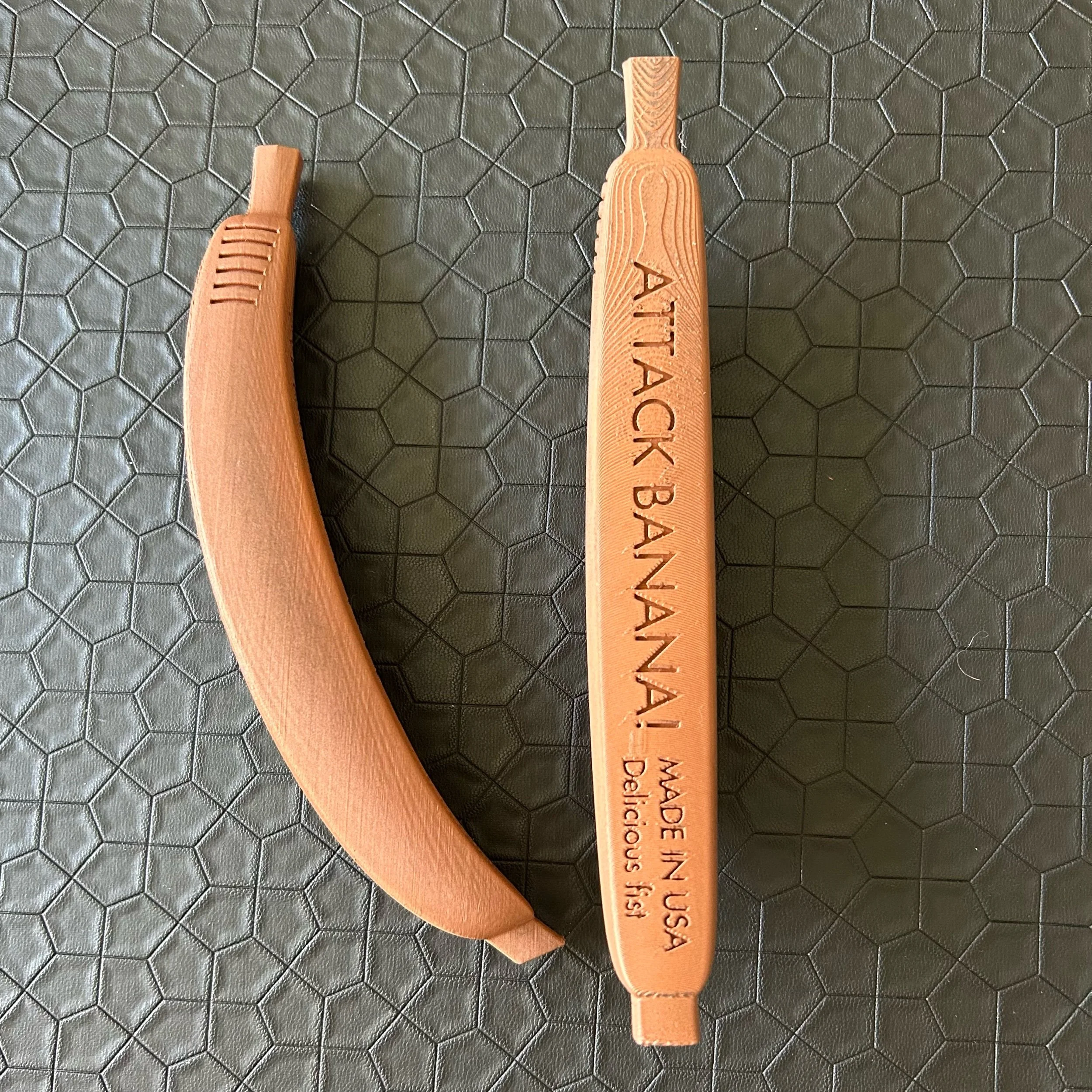 Image 1 of 1 Attack Banana $55.00 sold out These are 3D printed with copper infused filament and will patina over time. 7” over all length and weigh in at 4 oz. Sold Out Added! These are 3D printed with copper infused filament and will patina over time. 7” over all length and weigh in at 4 oz.