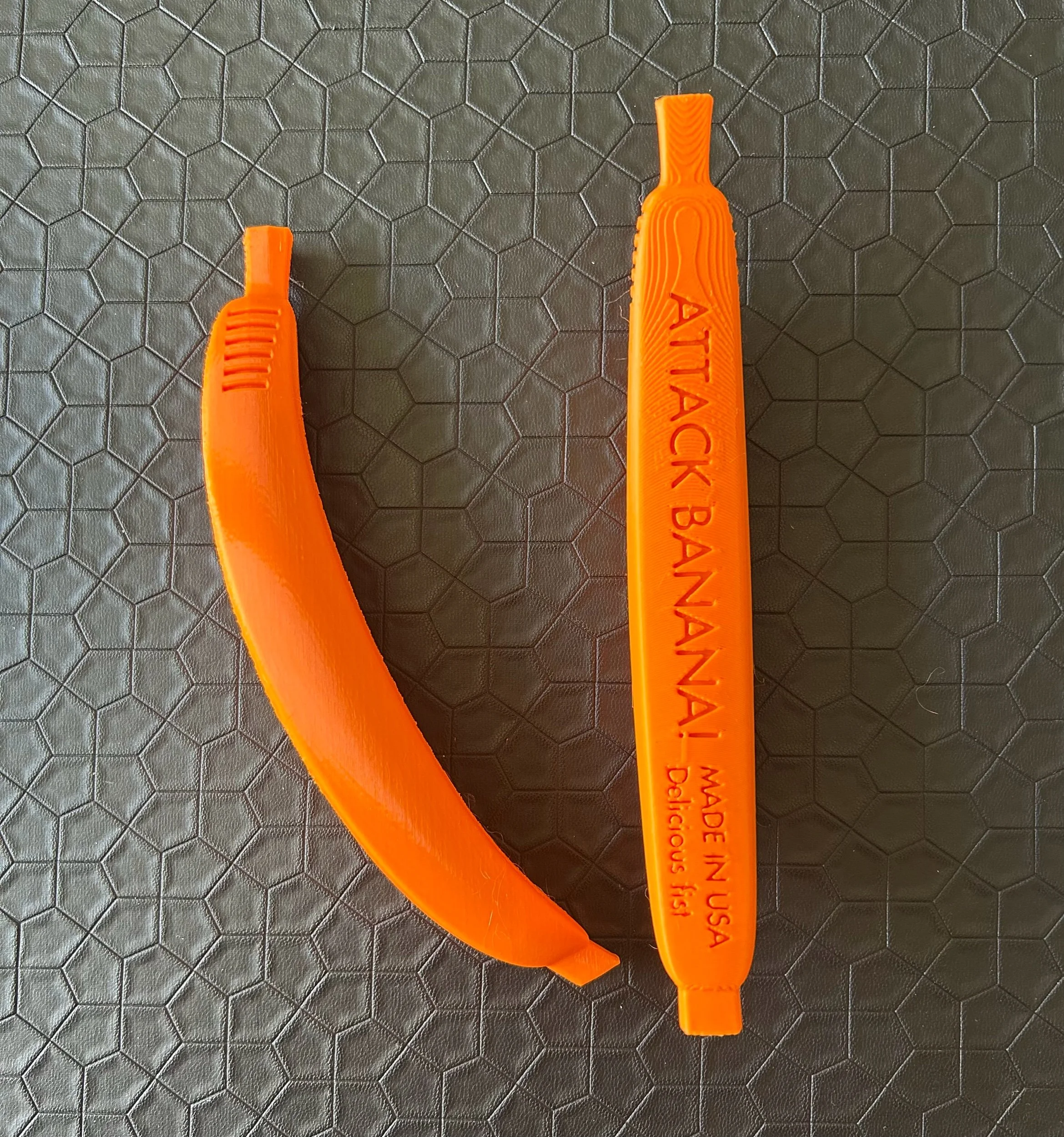 Image 1 of 1 Attack Banana $55.00 sold out Orange. PETG filament. 7” over all length. 3oz Sold Out Added! Orange. PETG filament. 7” over all length. 3oz