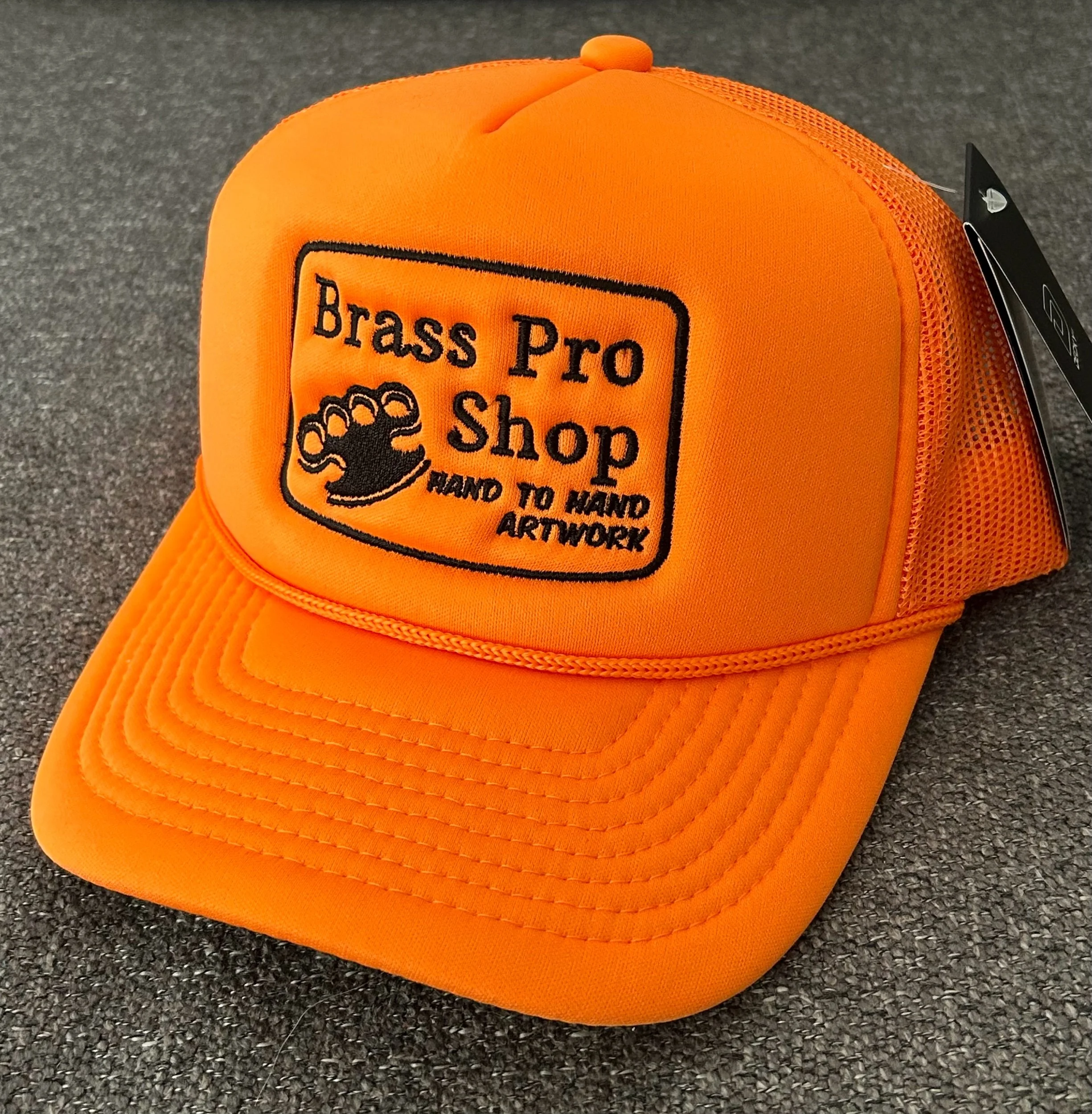 Image 1 of 1 Brass Pro Hat $35.00 Safety Orange . All black embroidery. Add To Cart Added! Safety Orange . All black embroidery.